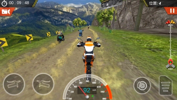 4、左侧负责操控摩托的移动方向,右侧则用来控制油门与刹车;玩家还能借助左上角的功能来调整驾驶视角,从而获取最理想的驾驶体验。