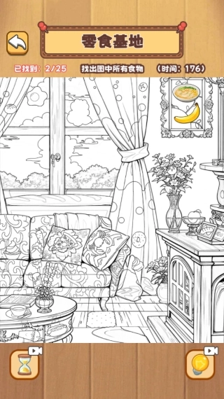 3.如下图所示,在零食基地这一关卡里,会对玩家的眼力进行考验,你得找出所有的食物才行。