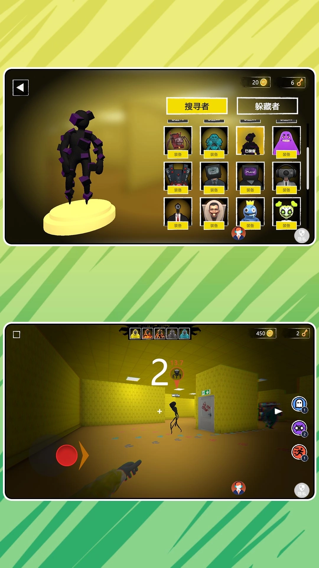 1、以双身份玩法为核心,搜寻者负责追踪目标,躲藏者则需隐匿身形,两种身份的操作逻辑与目标截然不同,玩法具有极强的差异性。