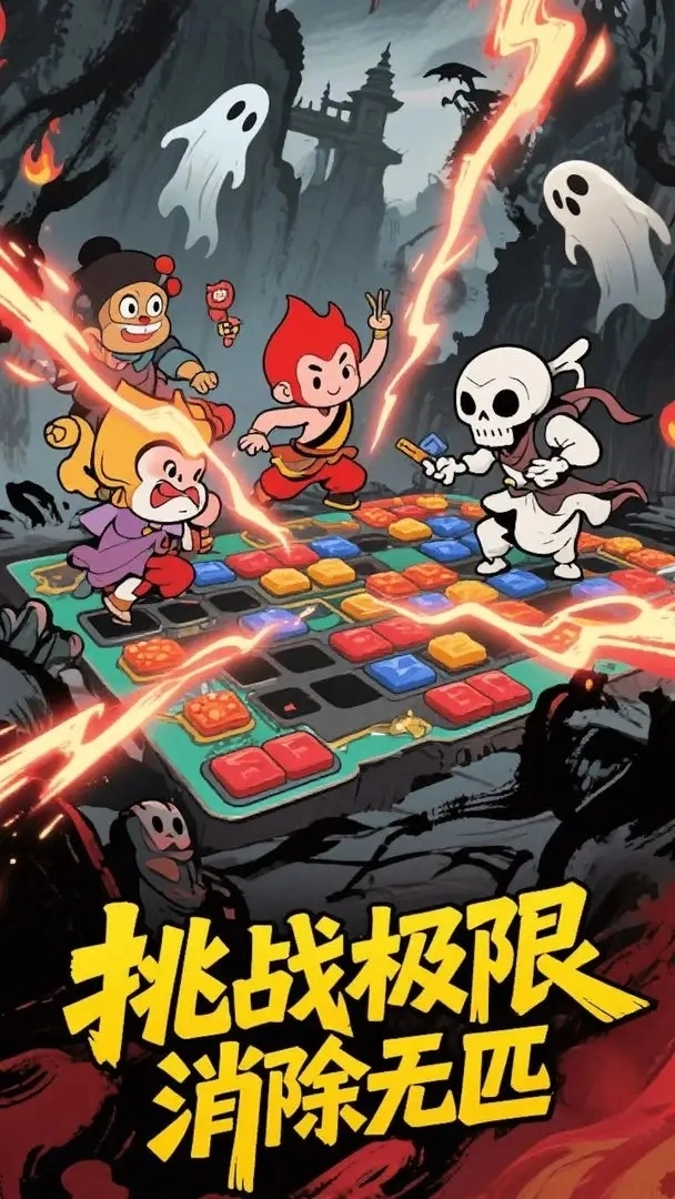 2、创新性地将三消玩法与战斗元素相融合,消除对应符号即可触发角色专属技能——例如悟空的金箍棒攻击、唐僧的治疗术,其策略深度远超传统消除类游戏。