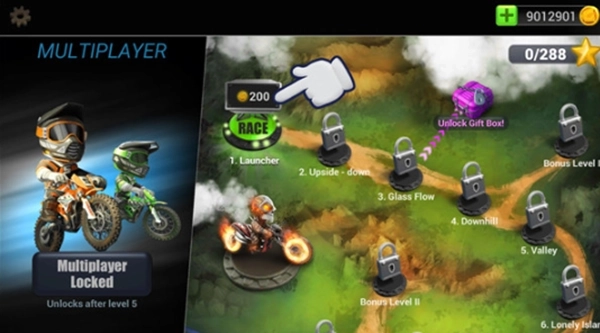 1.进入游戏后,挑选一个关卡,驾驶自己的摩托车开启比赛。