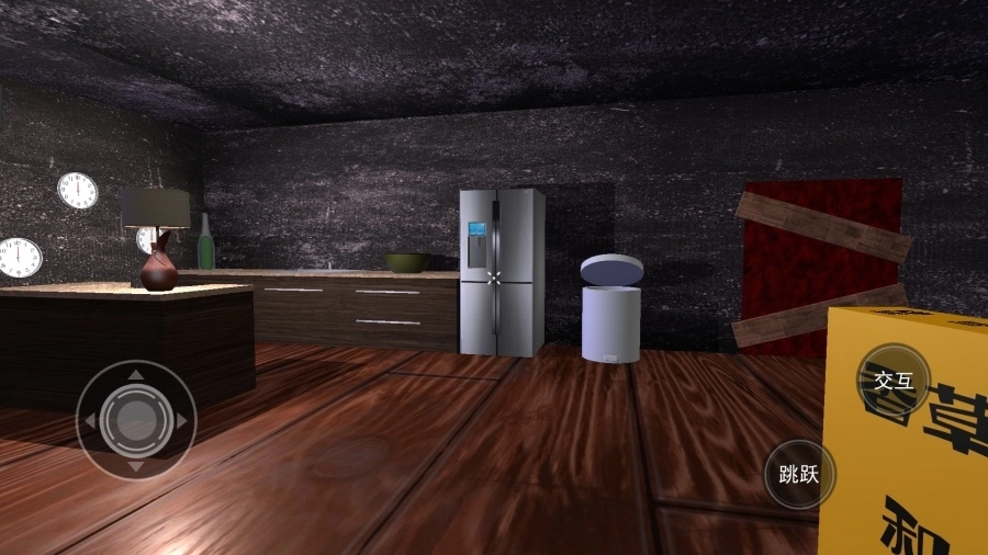 1、第一人称视角进入游戏场景,在房间内探索。
