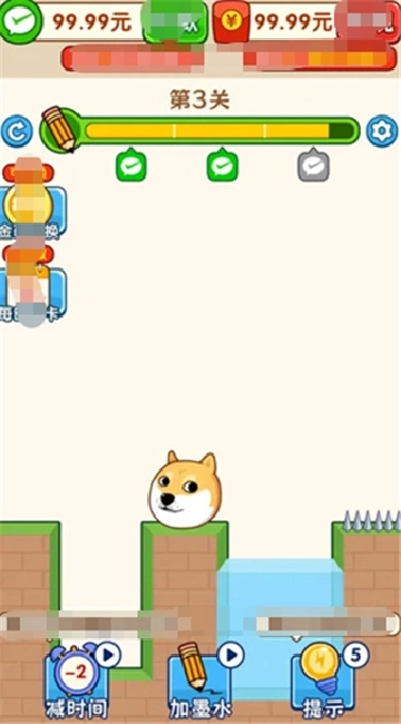 1、使用有限墨水量在屏幕绘制闭合图形,确保狗头在5-10秒防御期内不受攻击即可通关。