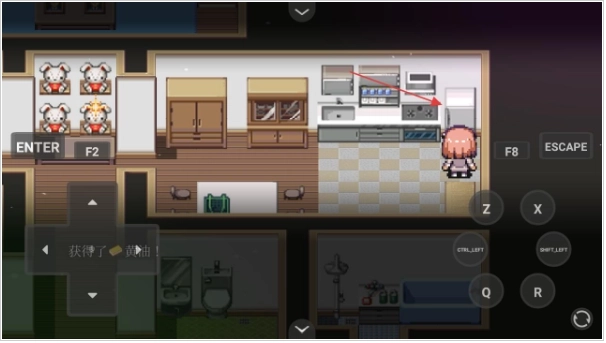 4. 在厨房区域控制角色移动至冰箱旁,与冰箱进行互动,从中获取所需物品,为后续的游戏进程储备资源。