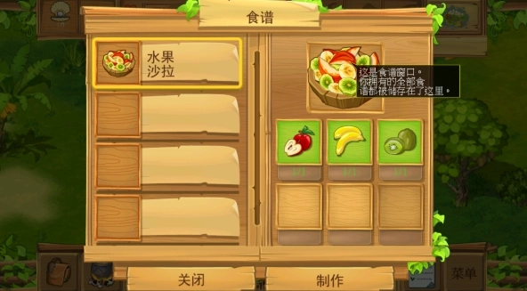 7、这里我们要制作一份水果沙拉,只需收集好所需物资,完成食物制作并提交任务就可以了。