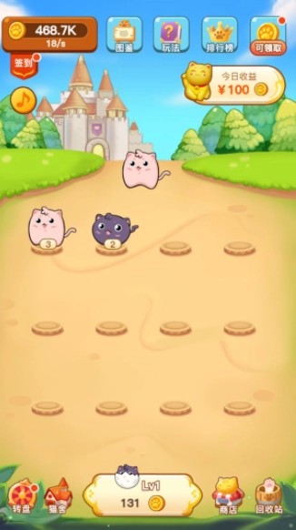 12365网为大家带来喵喵乐园游戏,命令这些猫作为一个团队去打败更强大的敌人,一款非常休闲的猫咪合成类赚钱游戏,除了合成还能通过看广告快速获取红包哦,你可以随时自由战斗,玩家需要通过游戏的策略来形成不同的战斗阵容,来试试吧!