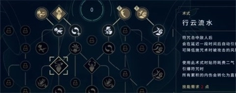 2、对于不擅长把控贴符后引爆时机的玩家,建议优先解锁技能树里的“行云流水”技能并装备使用。该技能能以消耗2点气的代价(解锁最终技能后耗气减至1点)自动触发贴符引爆,这样既可以降低贴符后可能遭受攻击的风险,同时在此过程中还能进行平砍输出。