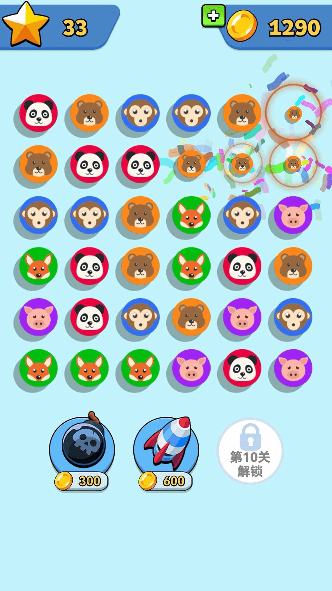 3.纯净清晰的视觉体验:动物徽章造型鲜明、易于辨识,界面布局整洁,聚焦消除玩法核心,去除多余干扰元素,助力玩家集中精力观察与思考。