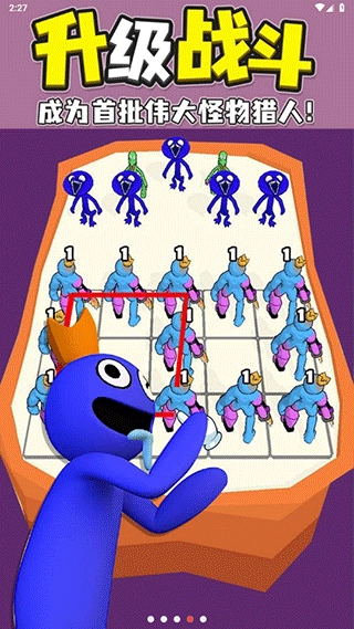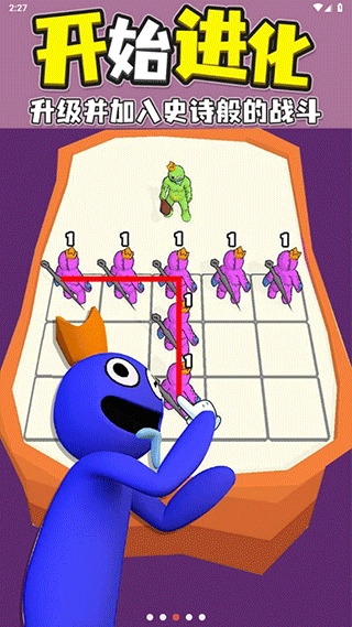 1、合并进化:玩家需召唤彩虹朋友系列的蓝色、橙色、黄色等怪物卡牌,拖动两个相同颜色 / 类型的怪物即可合并,生成更高阶、属性更强的新怪物,解锁专属技能。