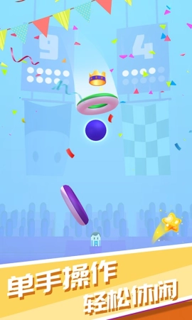 1、玩法简单,玩家只需通过滑动与点击操作来控制套圈,使其持续向上移动并跳跃,从而让自己能跳得更远。