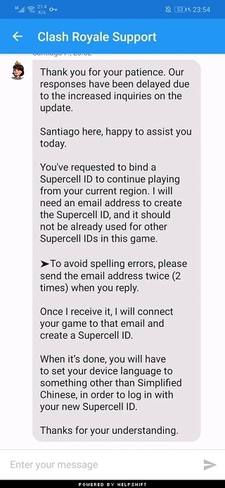 10、发送完毕后等待约十分钟,关闭游戏重新启动,使用SupercellID登录,邮箱填写你刚刚提交的地址,并完成邮箱验证即可成功登录原国服账号。