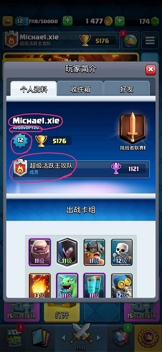 请记录下图中标注的关键信息(包括游戏昵称、所属部落、玩家标签#开头、国王塔等级)