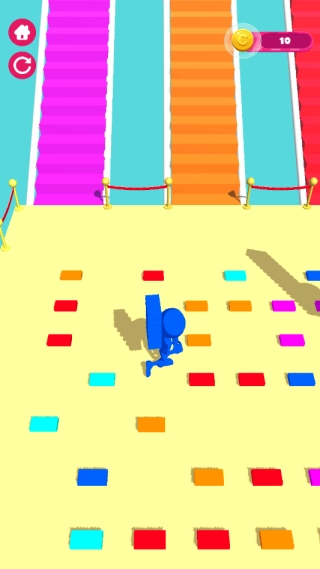 1.在跑酷时,通过左右移动来收集赛道上的建筑材料,不同颜色的材料分别对应着不同的承重与韧性属性。