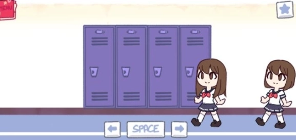 2、穿过教学楼,等待女孩来到储物柜,按下按钮,女孩会被触手抓住,游戏中尽量避免触手躲在储物柜中。