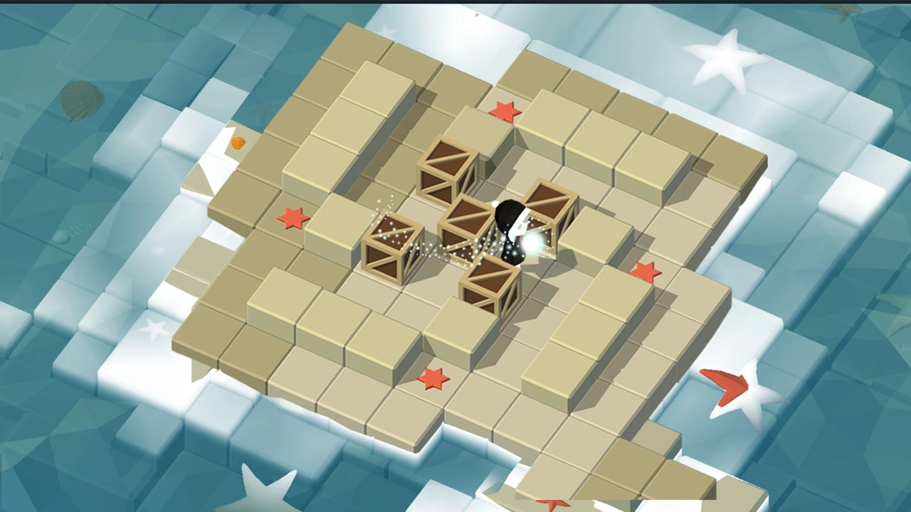 巧妙地规划路线,推动石球和箱子碰撞机关